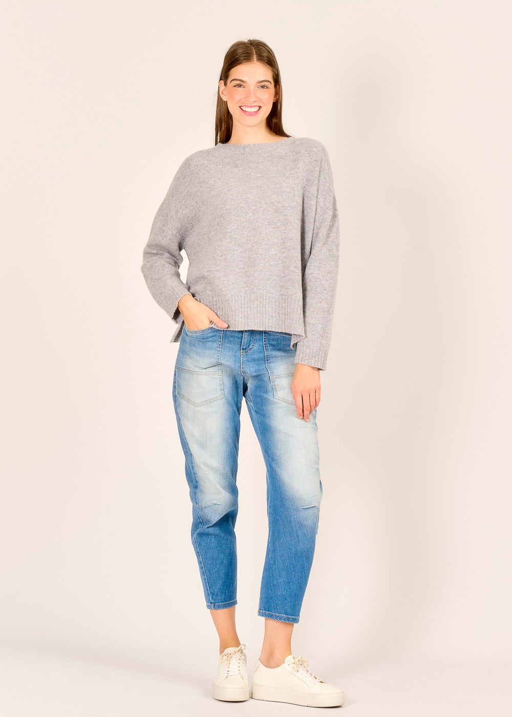Der Pullover in edlem grigio besticht durch seine schlichte Eleganz und die markante Ziernaht, die für einen modernen Akzent sorgt. Das weiche Material schmiegt sich angenehm an und bietet hohen Tragekomfort. Mit seinem zeitlosen Design lässt er sich vielseitig kombinieren – von casual bis chic. Ein stilvoller Allrounder, der in keiner Garderobe fehlen sollte.