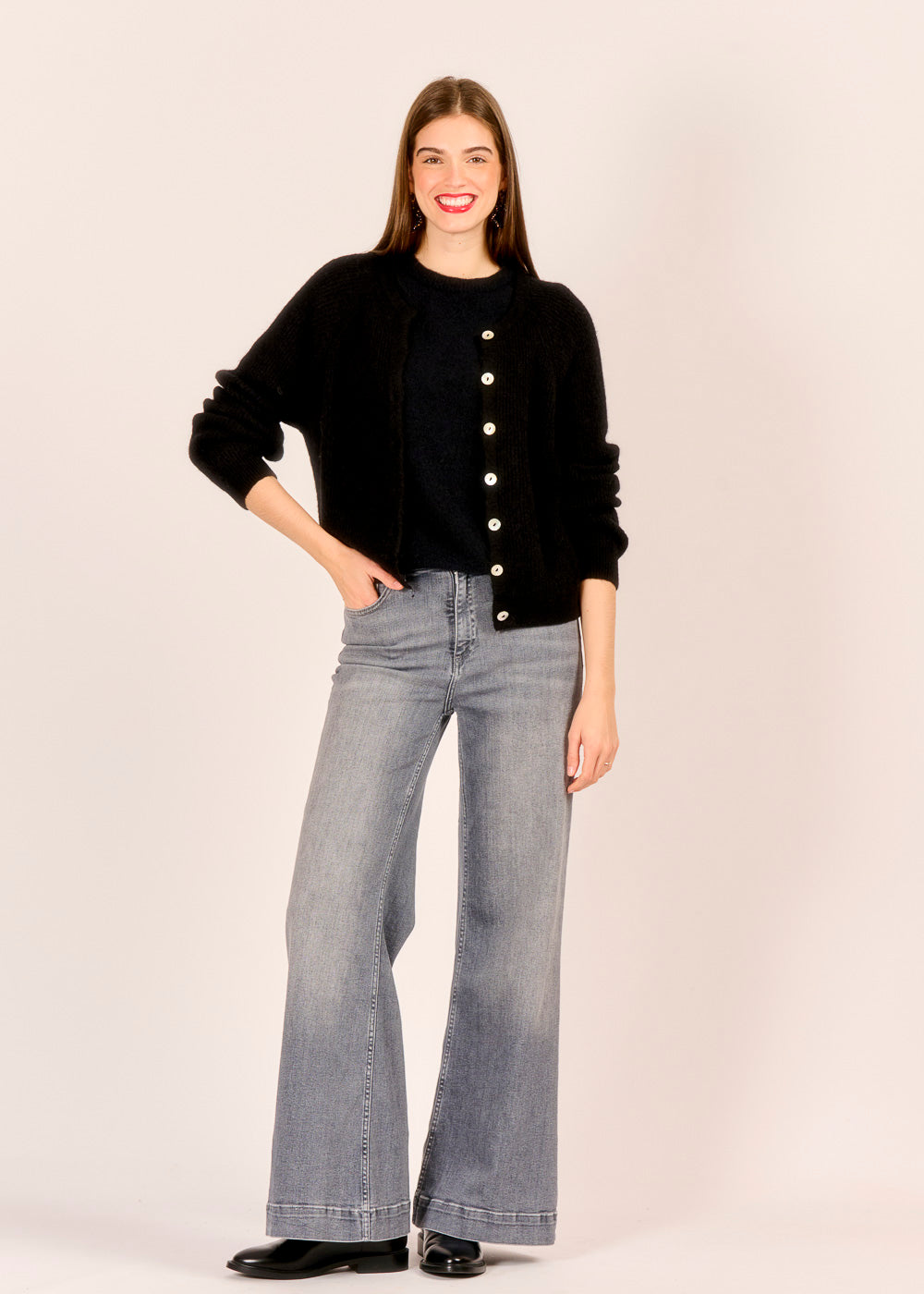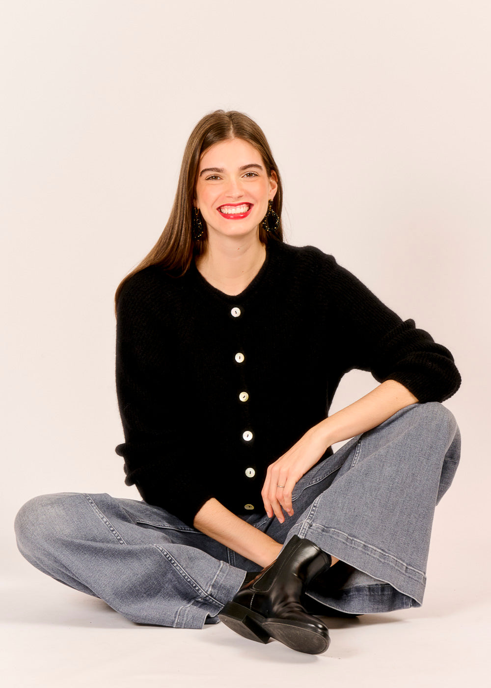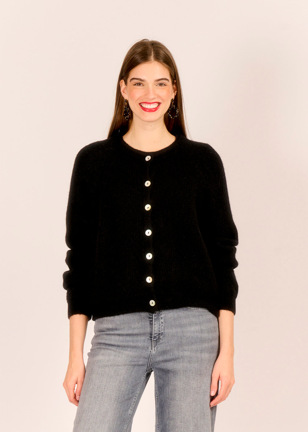 Von casual bis elegant: Der schwarze Strick-Bomberino ist dank Alpaka-Anteil besonders weich und macht jeden Look auf unkomplizierte Weise stylish. Als unverzichtbarer Allrounder eignet er sich perfekt für lässige Layering-Outfits sowie für festliche Looks und hält dabei wunderbar warm.